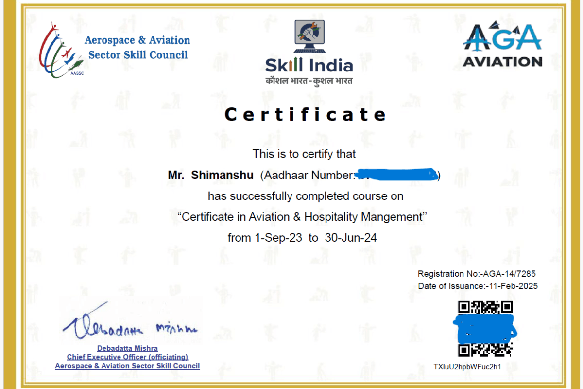 The recent affiliation of AGA Aviation Academy with AASSC marks a major milestone for us — and for you as a prospective aviation student. The certificate from AASSC serves as a seal of quality and trust, ensuring that our courses meet industry-recognized standards under the aegis of National Skill Development Corporation (NSDC) and the government’s […]